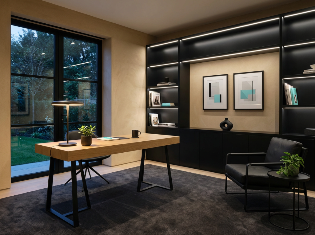 Maar: te veel zwart + te koel licht = het kan ineens hard en clinical worden. Daarom is de combo het mooist als je zwart verspreidt in kleine, herhaalbare details:
